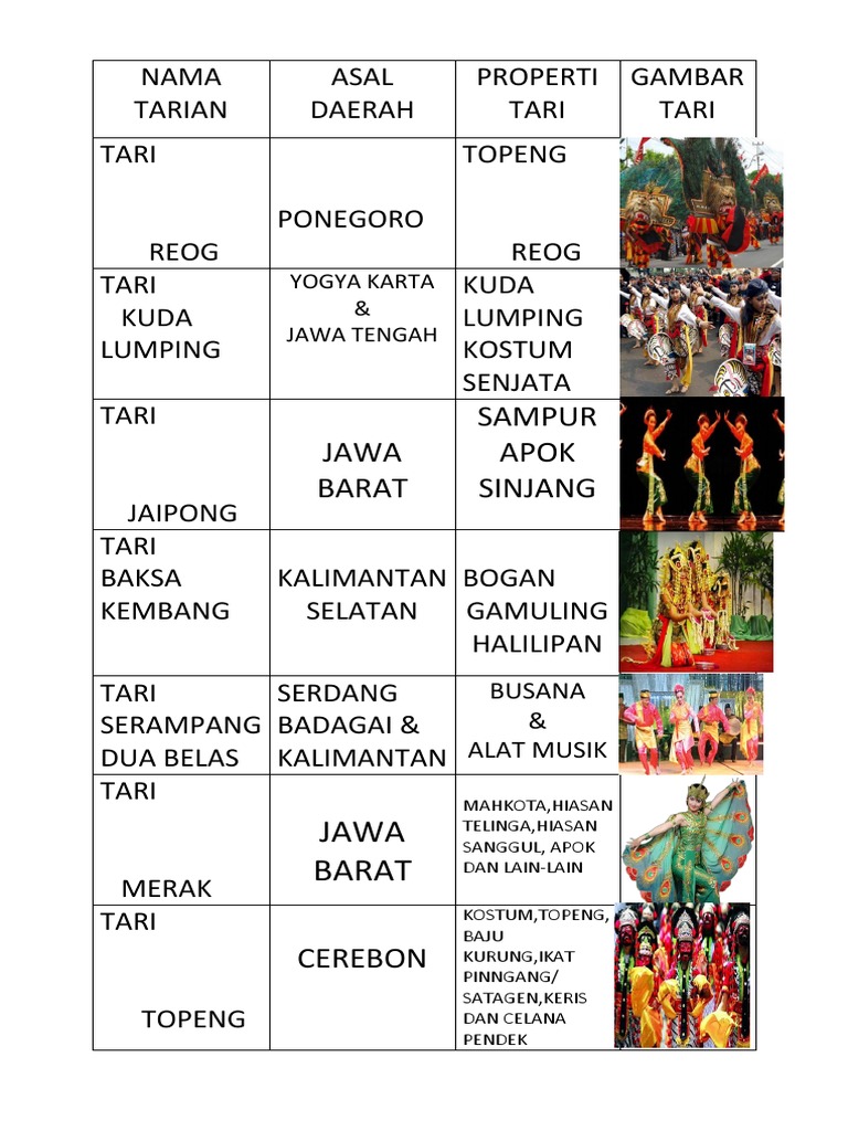 Nama Tari Dan Asal Daerah. Kita sebagai penerus bangsa indonesia ini harus tetap menjaga dan melestarikannya jangan sampai hilang atau punah ditelan zaman atau bahkan diakui oleh negara lain. Namun yang kami tampilkan di bawah adalah jenis tari yang sudah sangat populer dan terkenal dari tiap daerah.